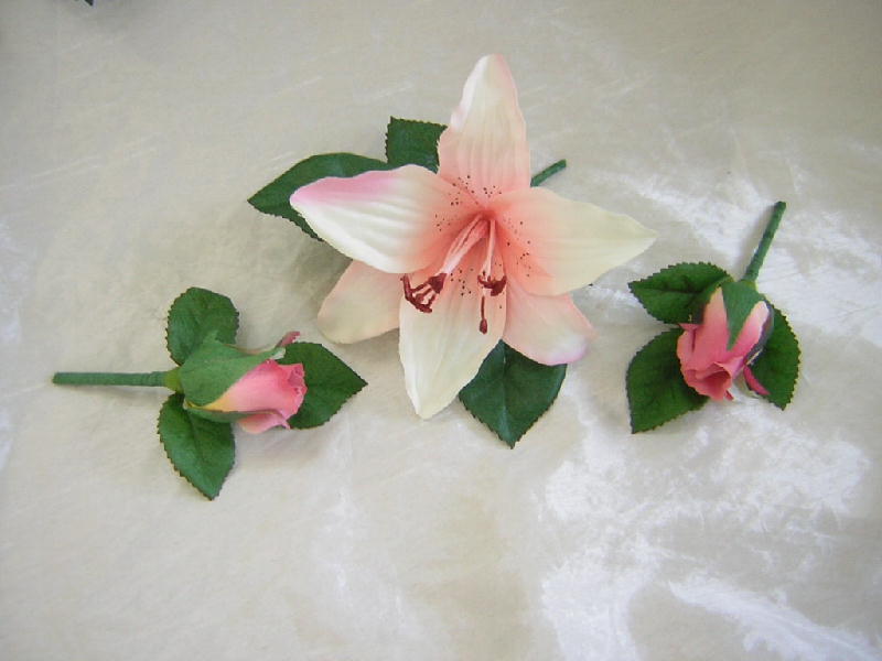 Set of 3 fancy buttonholes x2 pink rose bud buttonholes x1 large lily buttonhole