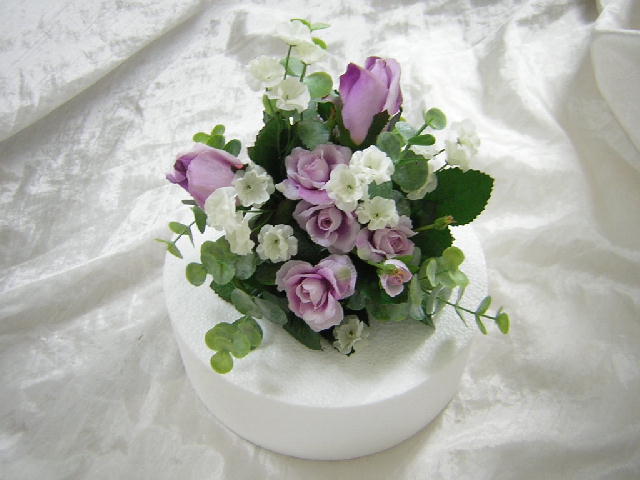 Cake topper made up with lilac roses, ivory seven heaven and a nice mixture of green foliage